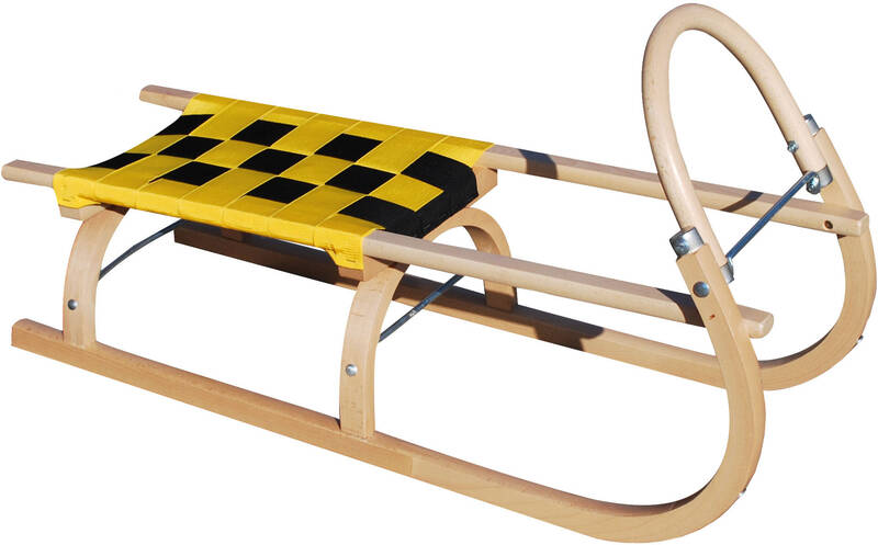- celodrevené sánky so zahnutým oblúkom na ruky, ktorý je uchytený kovovými čapmi